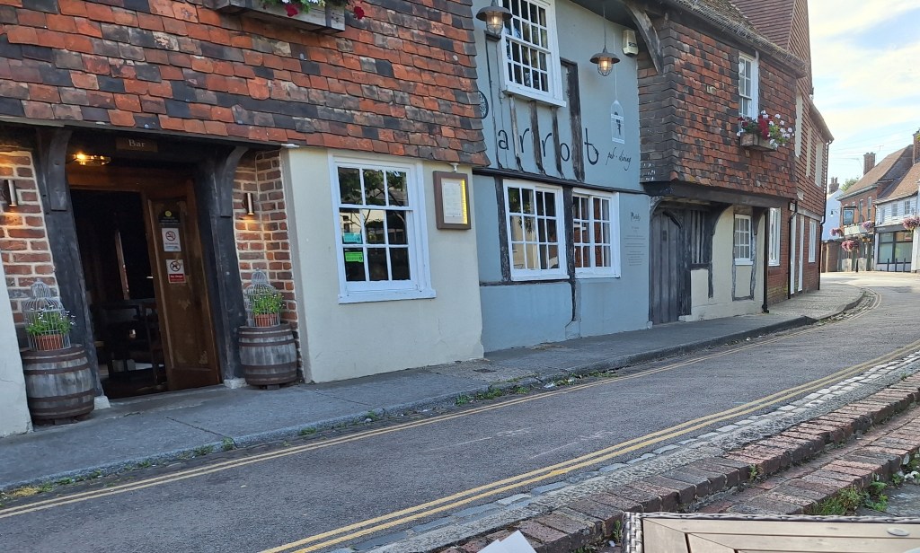 En indien nodig hebben we ook de auto nog. Ja die GRATIS LEENAUTO maar bij onze favoriete pub The Parrot mag je niet parkeren. Overal waar 2 gele strepen zijn getrokken mag je niet parkeren. Voor de zekerheid hebben ze de strepen dan maar zo ver mogelijk de steeg in getrokken. Als strepentrekker hoef je nergens over na te denken, gewoon doorgaan. En ik huppel , met mijn rode wandelstok, van park naar pub hier om de hoek. Lekker mensen kijken, liggend op een kleedje, eten en drinken worden verzorgd. Cheers!